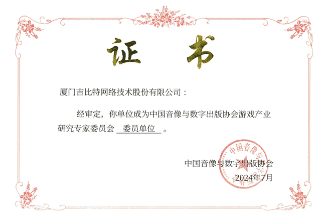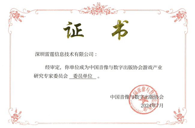 2024年7月25日,,,,中国音像与数字出版协会游戏产业研究专家委员会(以下简称“中国音数协游戏专委会”)成立大会在上海市召开,,,厦门J9.COM网络技术股份有限公司及其子公司深圳雷霆信息技术有限公司(以下统称“公司”)正式成为中国音数协游戏专委会委员单位。。。。