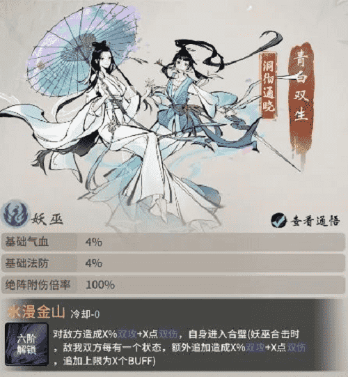 西湖踏春,,,,未曾想竟卷入到青白蛇故事中。。青蛇与白蛇本是修道有成的小妖,,,两人在西湖边上开了间医馆,,,,济世救民,,,不料沾惹人世因果,,遭高僧误解。。。白蛇被镇压于雷峰塔下,,,侥幸逃脱的青蛇则在三界奔波,,,,只为早日寻得解救白蛇之法。。如今千年已过,,高僧云游四海,,,,雷峰塔封印松动,,而青蛇亦寻得强力古宝,,意欲趁此机会解救出姐姐……若仙友有幸与青白双生结识,,,,即可习得其绝技·水漫金山,,,,对敌方造成双攻伤害,,,于修炼大有助益。。。。